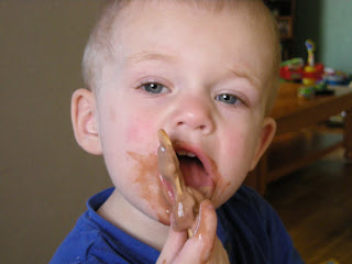 Justus is doing great too! He can now say "choo choo". He says "Mommy" pretty clearly now too. He could always say "mommy", but it wasn't very clear that he was referring to me or if that was even what he was saying. He definitely uses it a lot now to get my attention though. We're just excited that he is finally starting to talk! He's also been eating a bigger variety of foods lately, which is a huge improvement. He is willing to try whatever we are eating, which I think will make my life a little easier. Now if only he could master using the fork and spoon!!